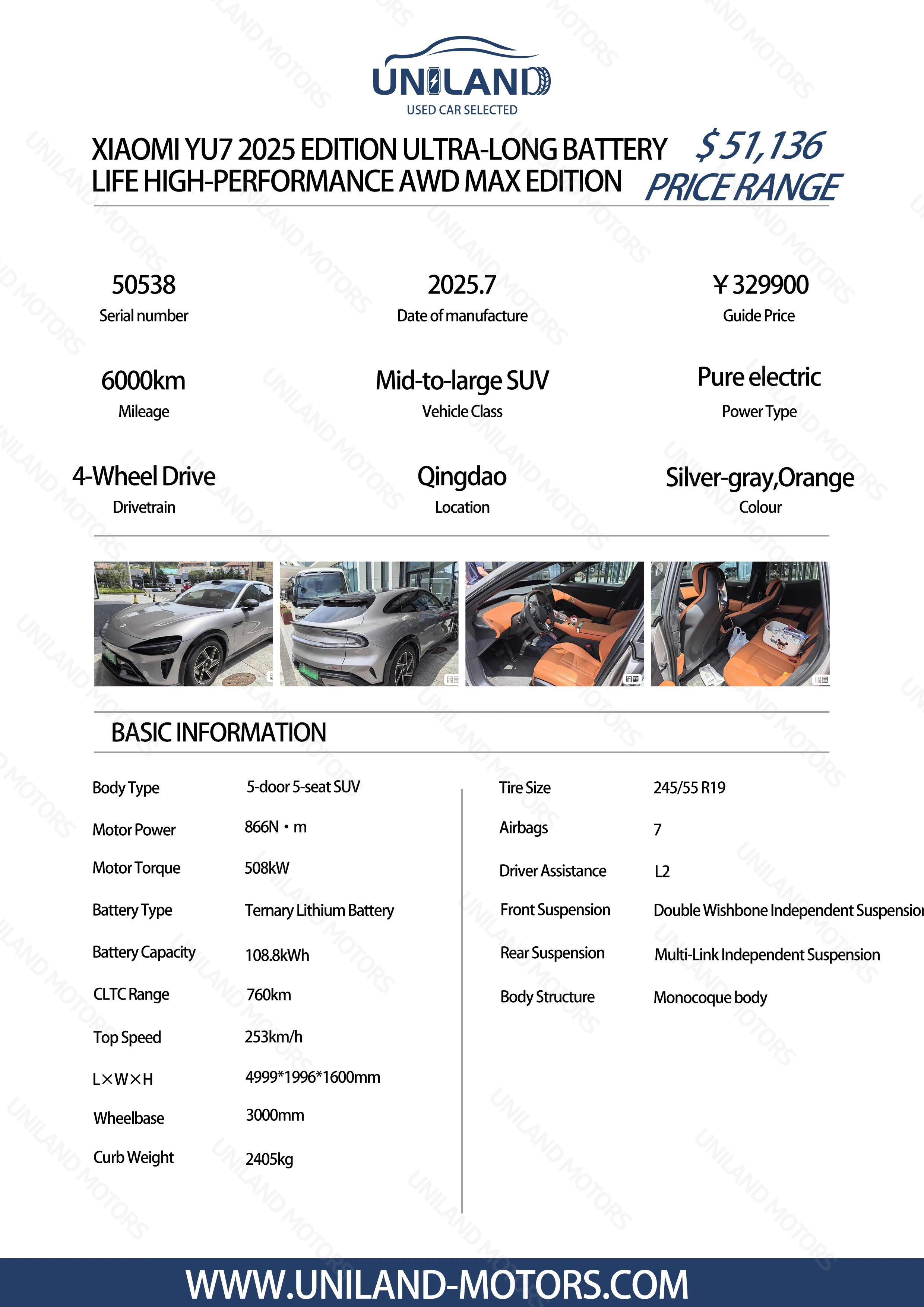 SECOND HAND CARS New Arrival for Xiaomi YU7 SUV Electric Car Ultra-Long Range FWD High Performance Luxury EV with Lithium Battery SUV Used Car